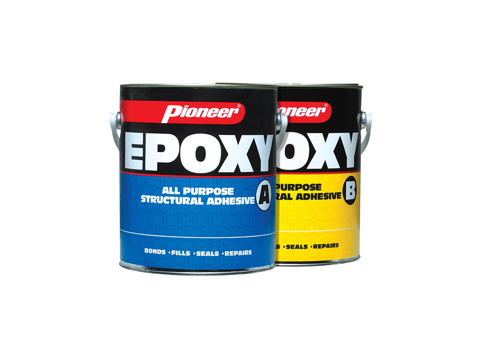 Pioneer All Purpose Epoxy is a 100% solids thermosetting plastic compound that forms strong bonds on a wide variety of rigid materials -glass, metals, ceramics, concrete, wood and some plastics except polyethylene, soft PVC and Teflon).