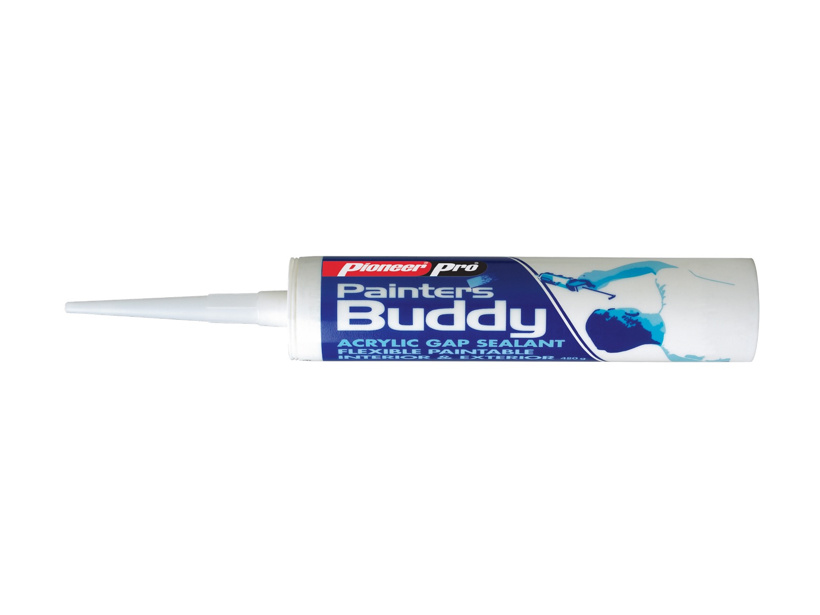 Pioneer Pro Painter's Buddy Acrylic Gap Sealant is a multi-purpose, interior/exterior sealant that when cured, forms a flexible, durable, weather resistant seal that bonds to most common building materials. It is fully paintable and sandable when cured. Uncured sealant cleans up easily with water.