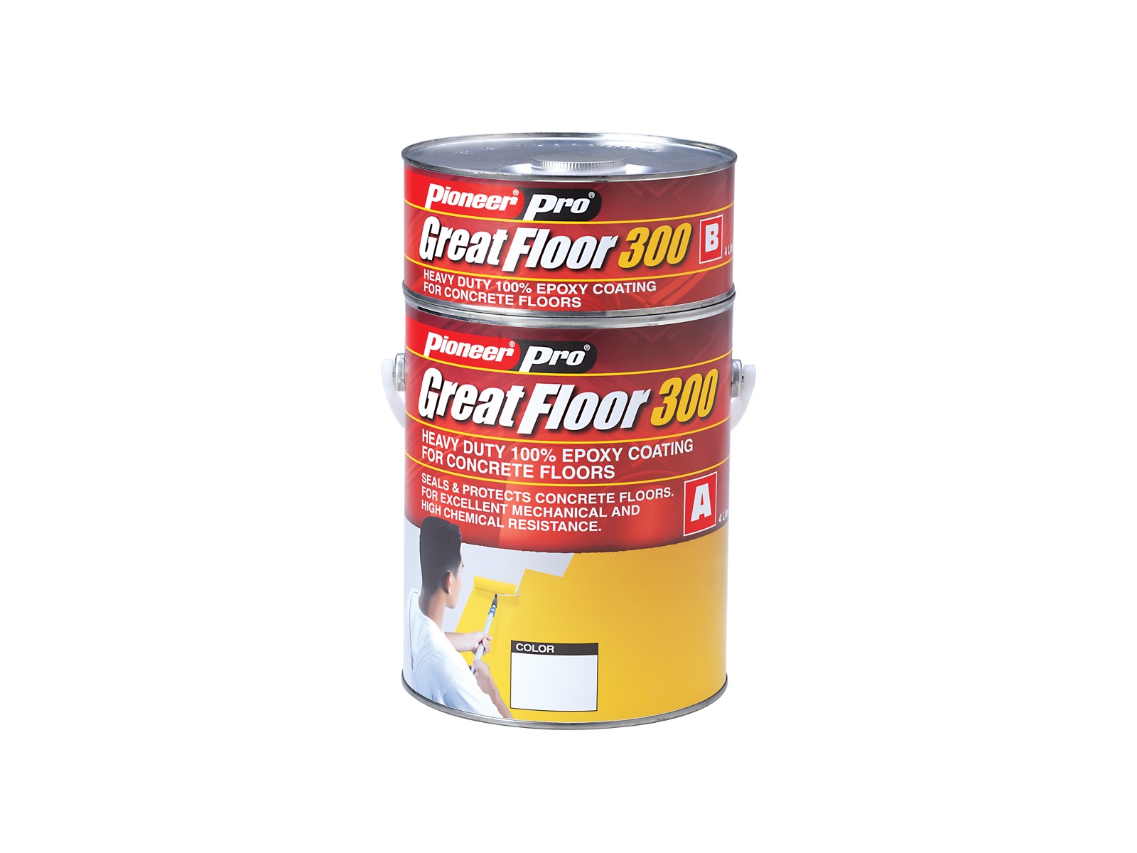Pioneer Pro Greatfloor 300 is a two-component, heavy duty, 100% solids epoxy floor coatings for heavy duty protection. It produces a high gloss finish and has very good adhesion on steel and concrete. It is easy to apply with nominated spray equipment both airless and conventional. it can also be applied by roller to achieve specified film thickness. It is ideally recommended for coating new and old uncoated or previously coated floor that is exposed to heavy foot and rubber tired vehicle traffic or intermittent chemical spills, splashes and power washings.